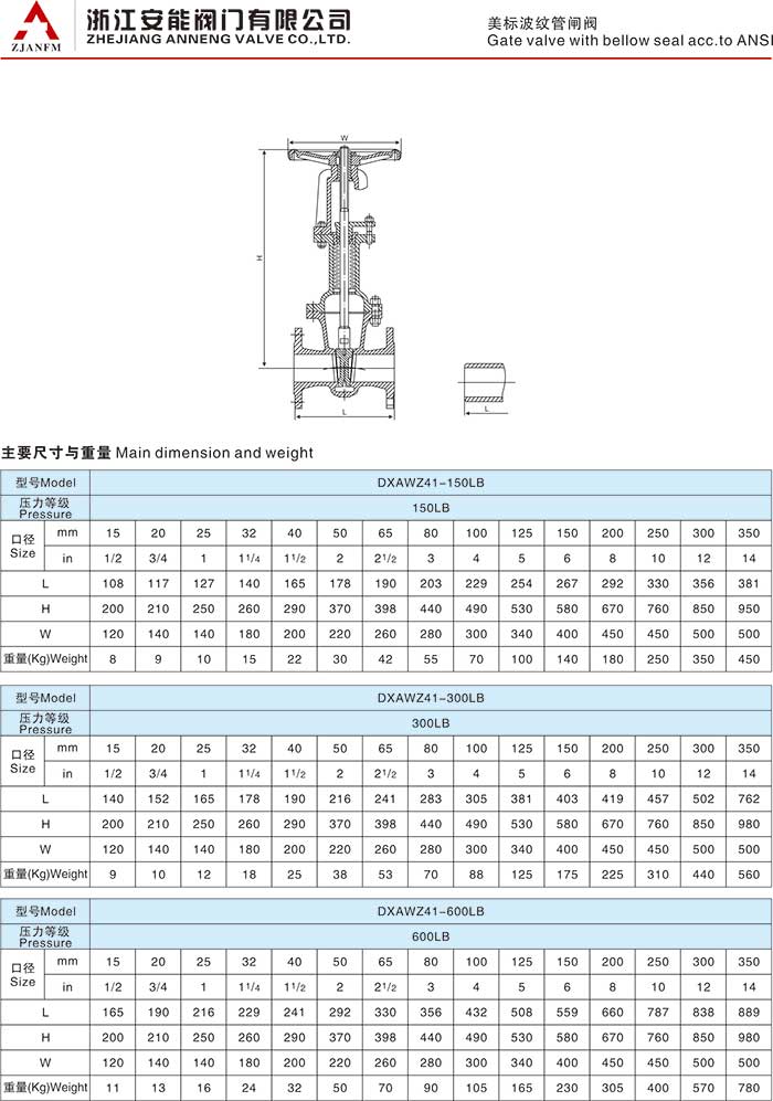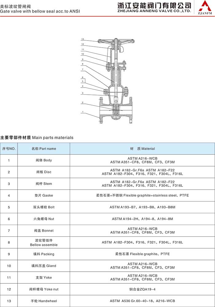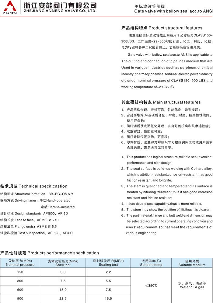 美标波纹管闸阀